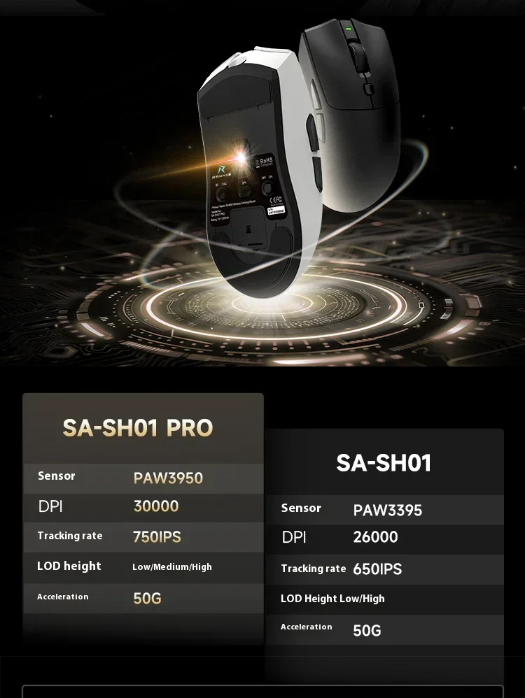 Tag : Rawm SA SH01Pro Wiresless Mouse PAW3950 Sensor Three Mode 8K Gaming Mouse Hot Swap Switch FPS