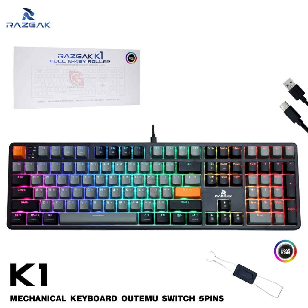 Tag : Razeak K1 Mechanical Keyboard บลสวตซ เรดสวตซ คยไทยไฟลอด Hot Swap5pin ถอดสวตซได RGB ม
