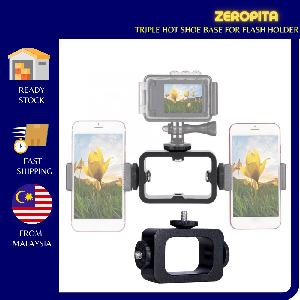 Tag : Ready StockZEROPITA SQS 3 Triple Hot Shoe Base Mount For Flash Holder LED Light Microphone