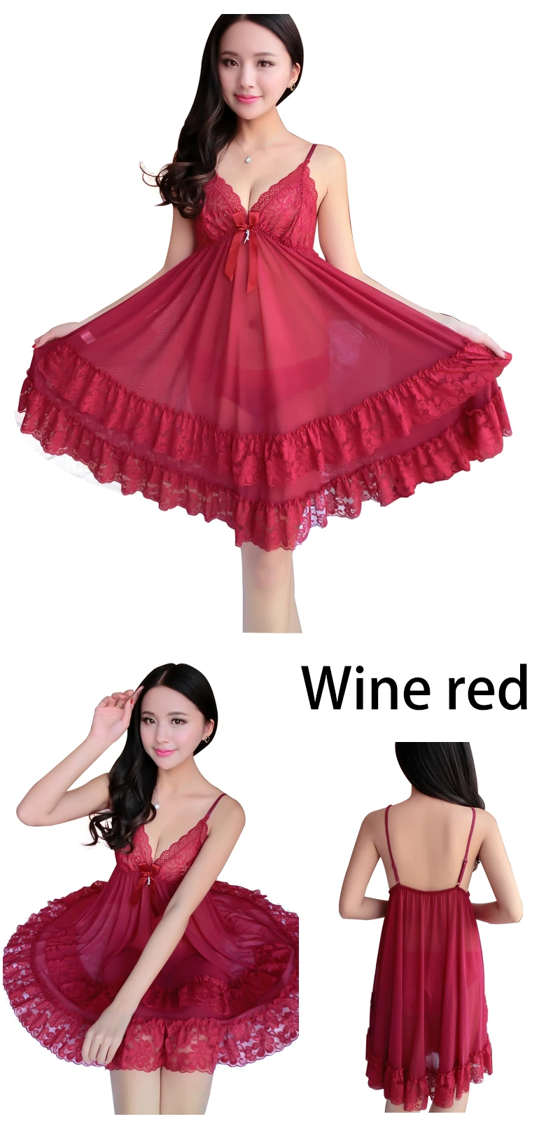 Tag : Red Lingerie Babydoll V Neck Chemise Sleepwear Boudoir Nighty Sexy Lingerie Transparent Sexy