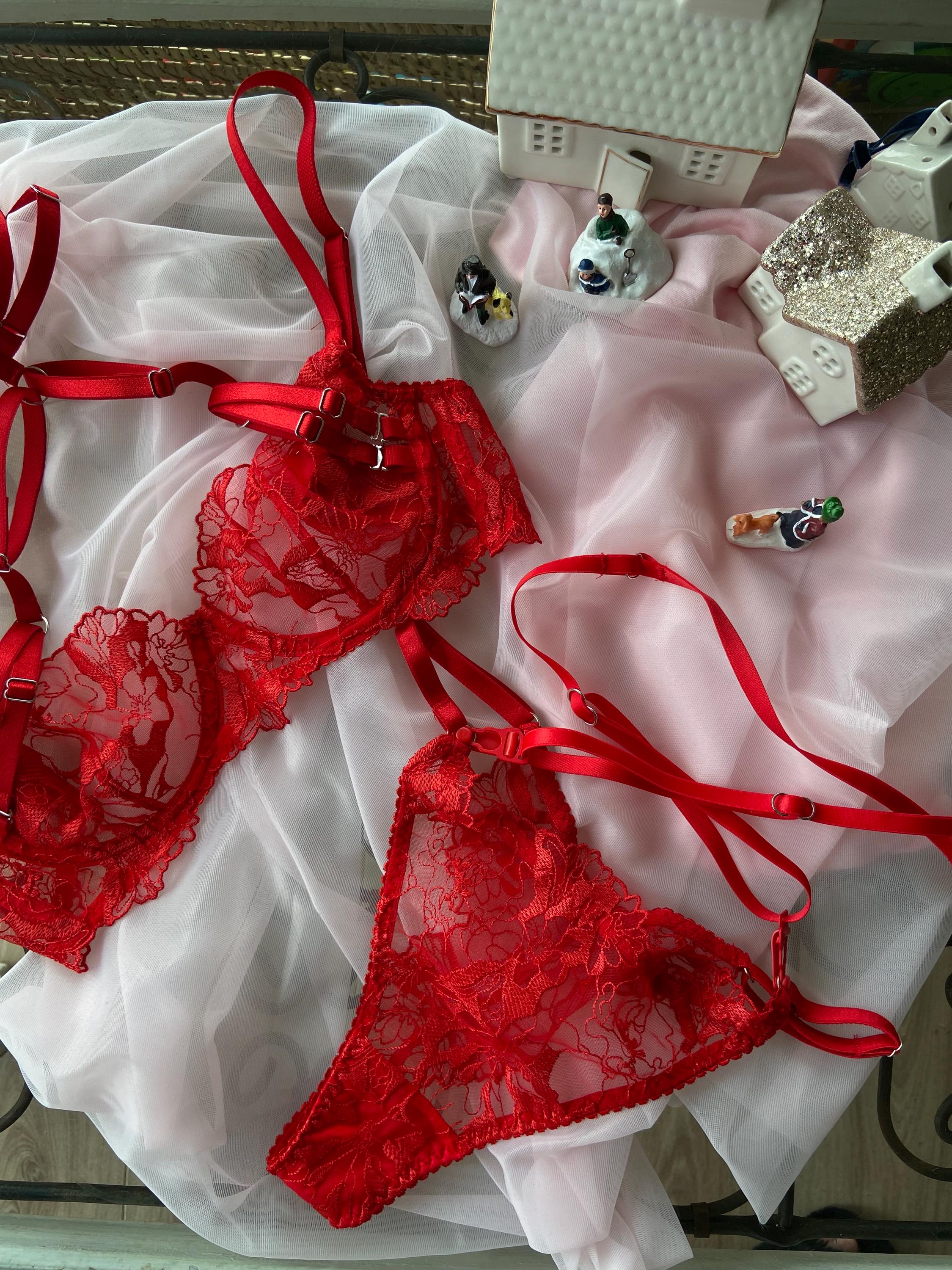 Red Lingerie Set Embroidered Mesh Lingerie With Straps Etsy is a popular picture for sexy and hot.