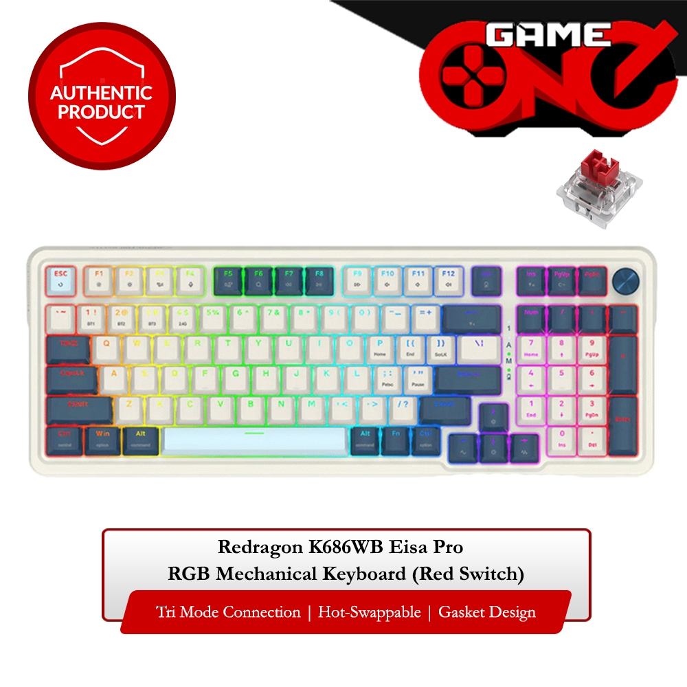 Tag : Redragon K WB Eisa Pro RGB Keys Tri Mode Hot Swappable Mechanical Keyboard Red Switch