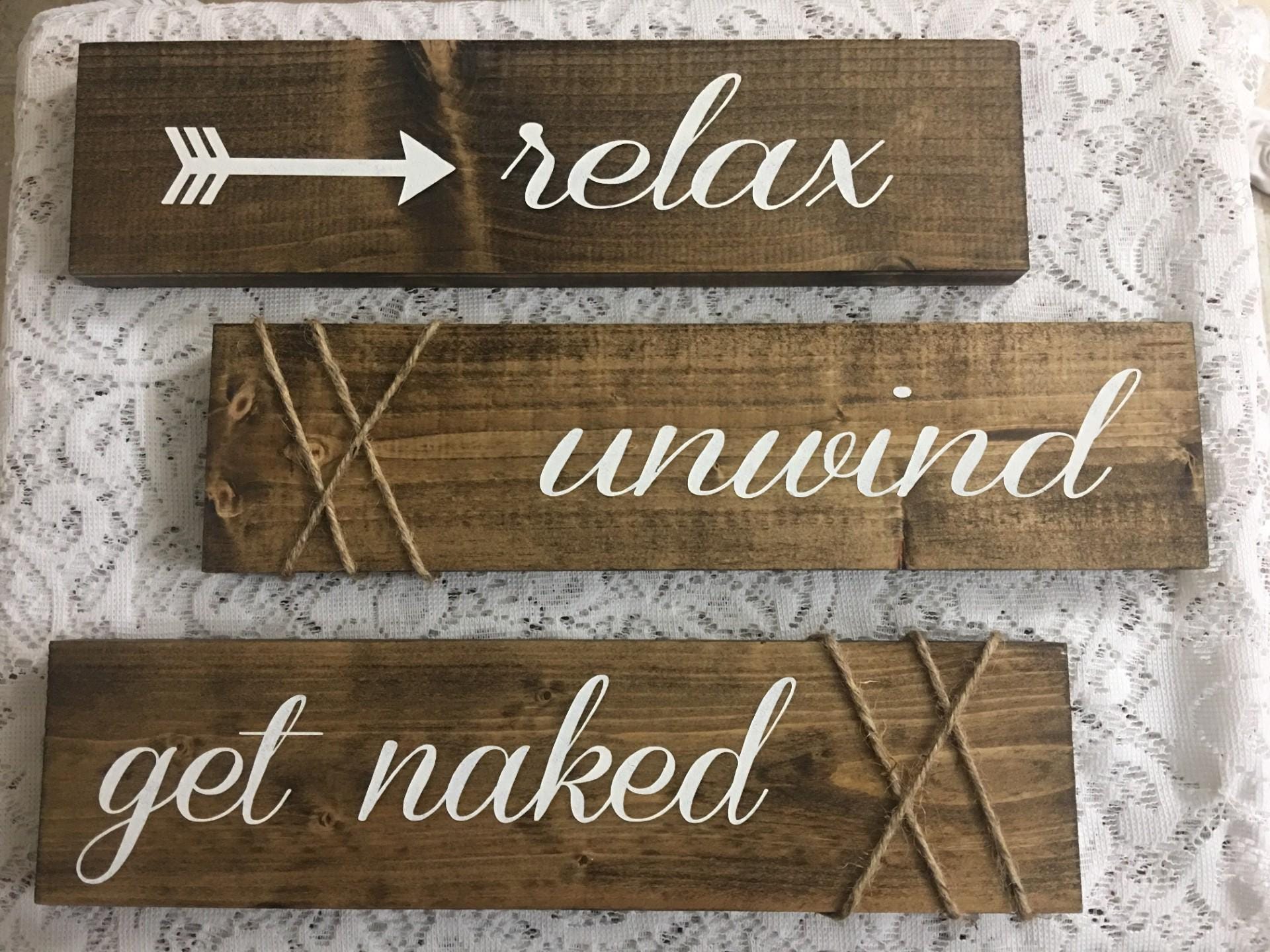 Relax Unwind Get Naked Wood Signs Set Of 3 Signs Wood Bathroom Decor Wood Bathroom Signs is a popular picture for sexy and hot.