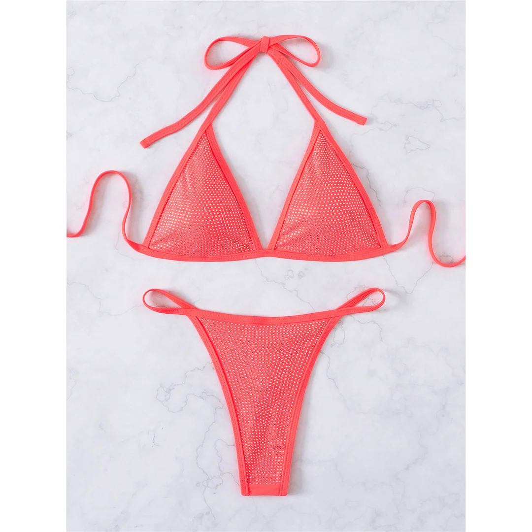 Tag : Rhinestones Extreme Mini Micro Thong Bikini Women Solid Swimwear Female Swimsuit Two Pieces