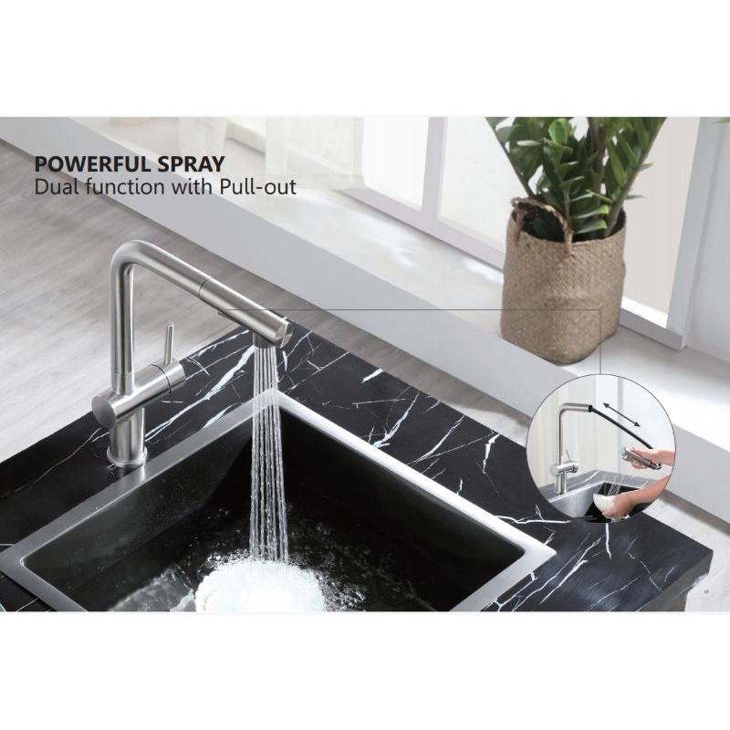 Tag : Rubine Sink Faucet With Pull Out Spray Hot Cold Flexible Hose INOX 7047PS SS 1yr Warranty