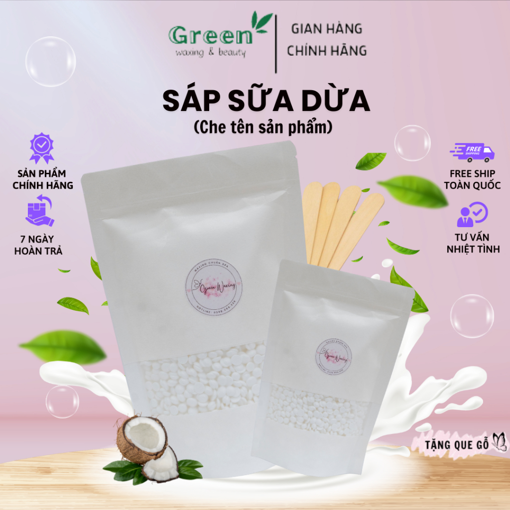 Sáp Wax Lông Nóng Sữa Dừa Cao Cấp Tiệm GREENWAXING Chuyên wax tay chân bikini tặng que gỗ phết