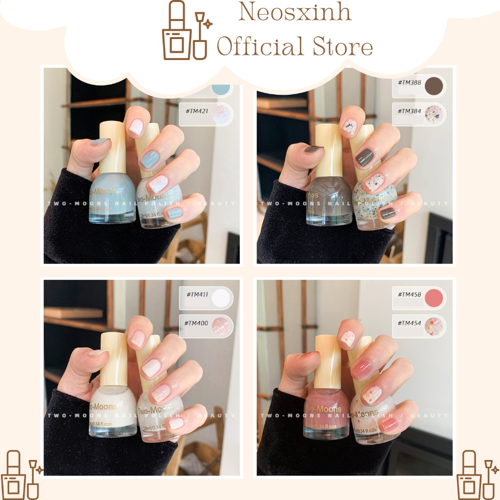 Tag : Sơn Móng Tay Tự Khô Two Moons SET 2 LỌ 2 Trắng Nước Gạo Thỏ Hạt Kim Tuyến Nude Đen Trắng Pastel