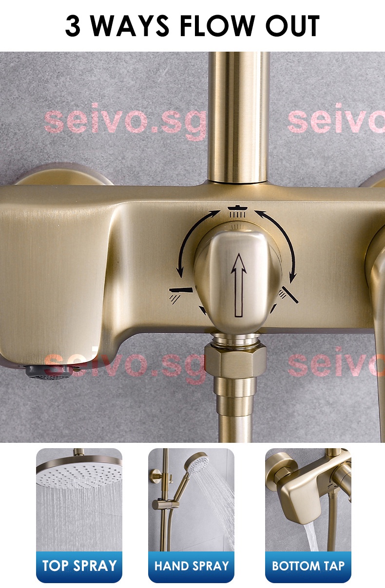 SG STOCKSBrushed Gold Shower Set Hot Cold Rain Shower System SPA Rainfall Bath Faucet Wall