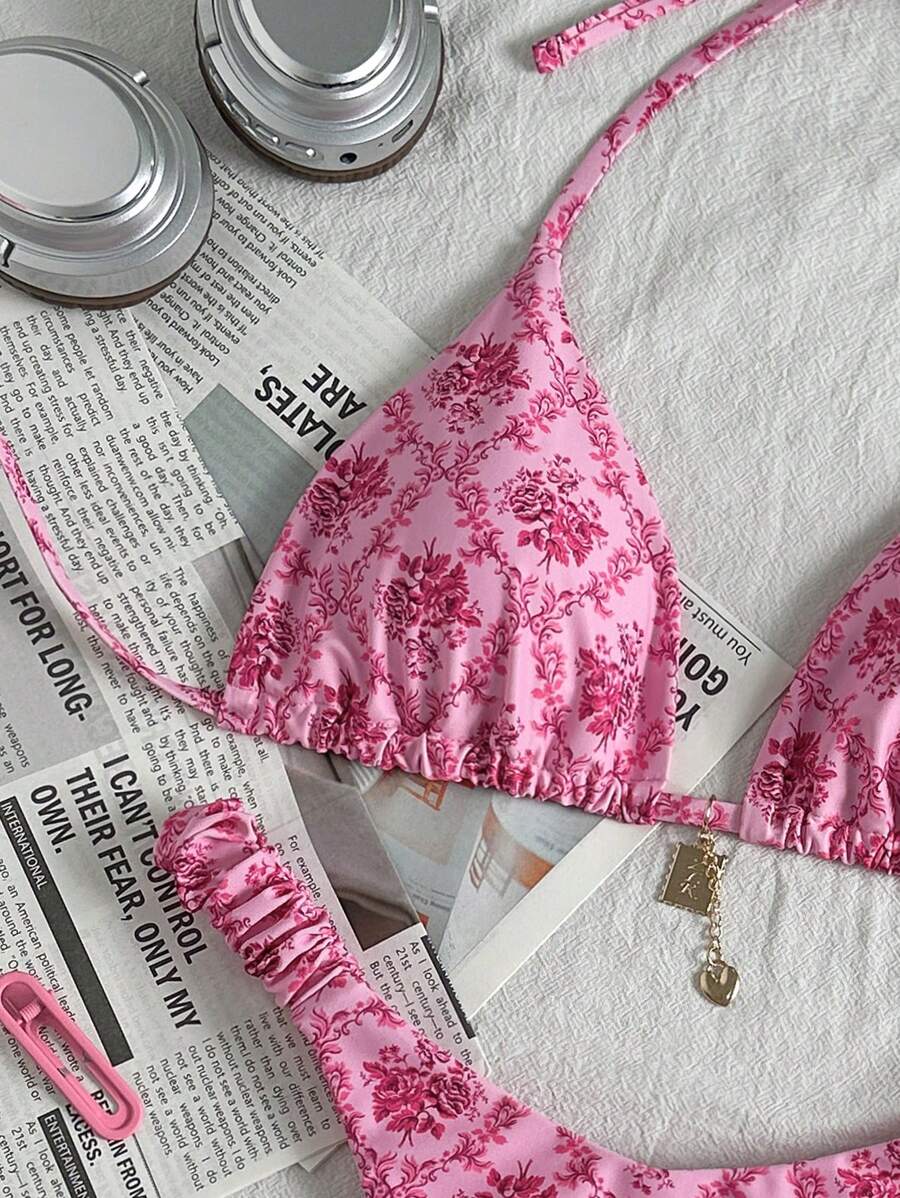 SHEIN 2 Peças Conjunto de Roupas de Praia de Verão para Mulheres Top de Maiô Bikini Triângulo is a popular picture for sexy and hot.