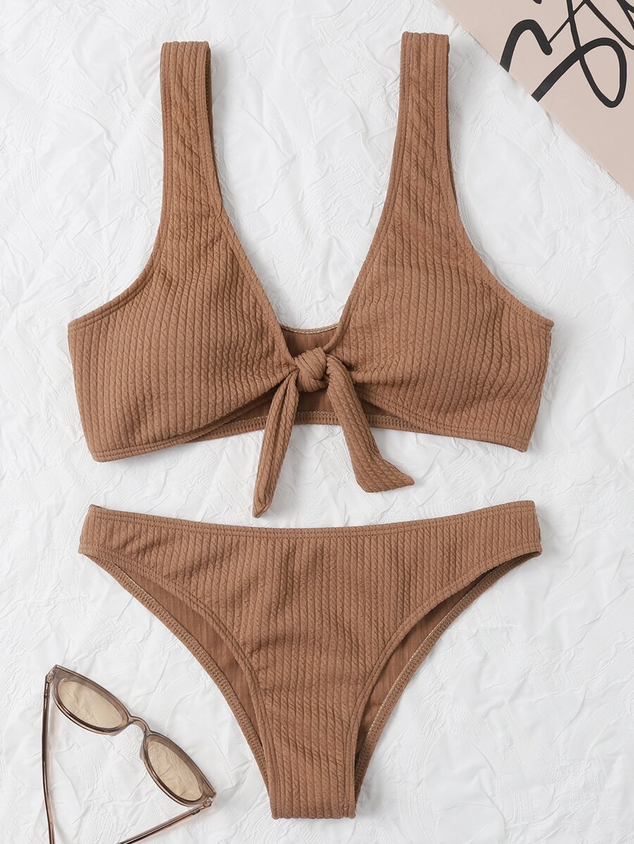 SHEIN Swim Bikini de verão sólido nó frontal no sutiã e na parte inferior traje de banho is a popular picture for sexy and hot.