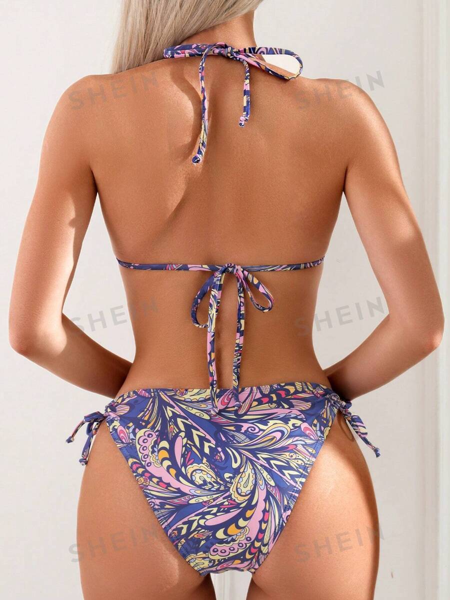 Tag : SHEIN Swim Conjunto De Bikini Con Estampado Todo Sobre Todo Con Cuello Halter Y Tirantes Finos