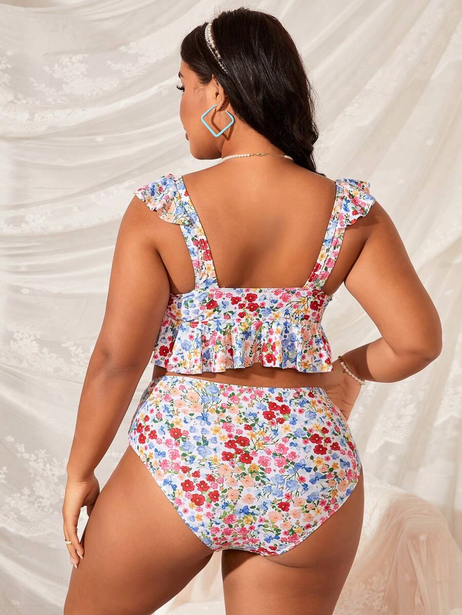 SHEIN Swim Curve Conjunto De Bikini Con Estampado Floral De Talla Grande Con Ribete De Volantes is a popular picture for sexy and hot.