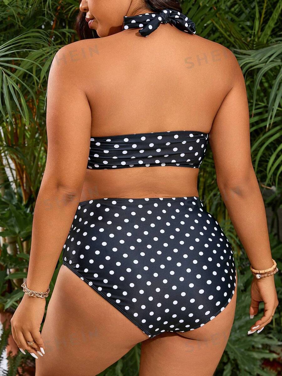 SHEIN Swim Curve Conjunto de bikini con lunares y espalda descubierta con pantalón corto de baño is a popular picture for sexy and hot.