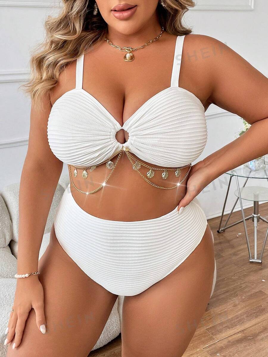 SHEIN Swim Curve Plus Size Bikini Set With Chain Details And Textured Fabric SHEIN USA is a popular picture for sexy and hot.