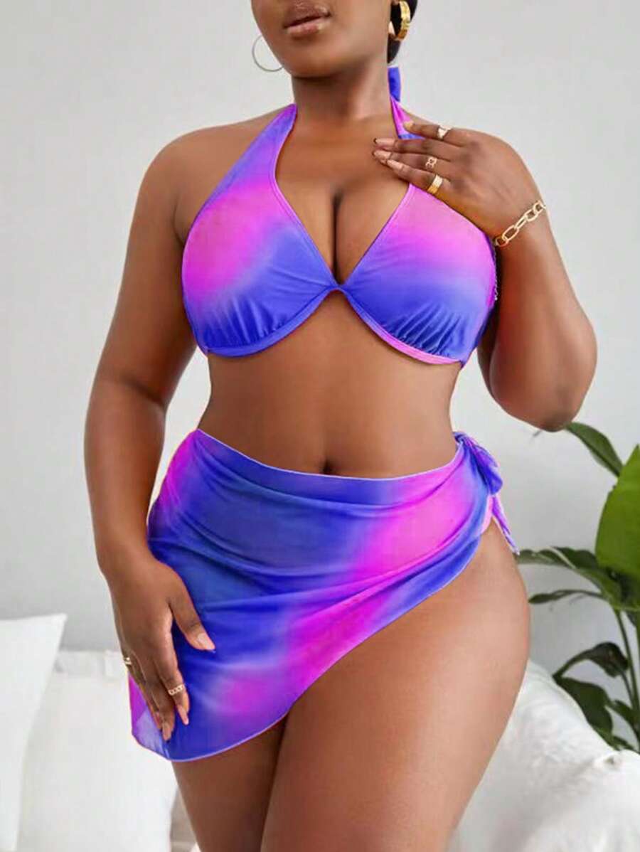 Tag : SHEIN Swim Curve Plus Size Ombre Halter Push Up Bikini Set With Beach Skirt Summer Beach SHEIN USA