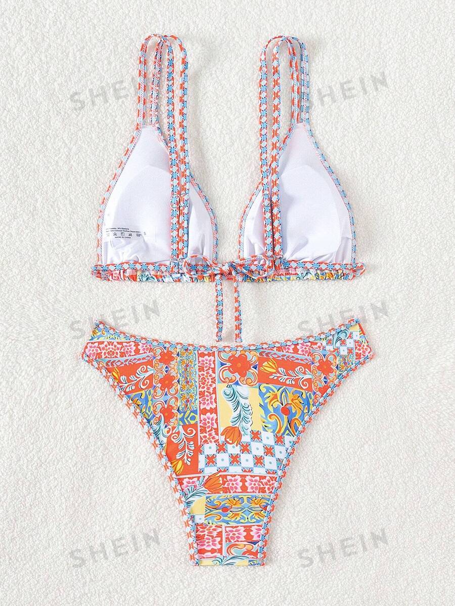 Tag : SHEIN Swim Flower Print Bikini Set Bikini Swimwear Bathing Suit Beach Outfit Summer Vacation