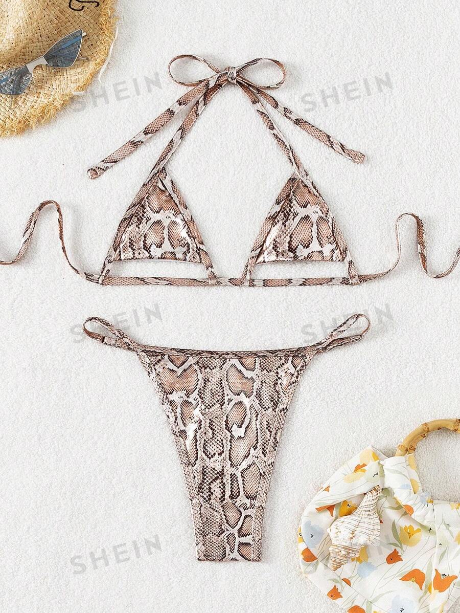 SHEIN Swim SXY Summer Beach Women S Snake Print Halter Neck Bikini Set SHEIN USA is a popular picture for sexy and hot.