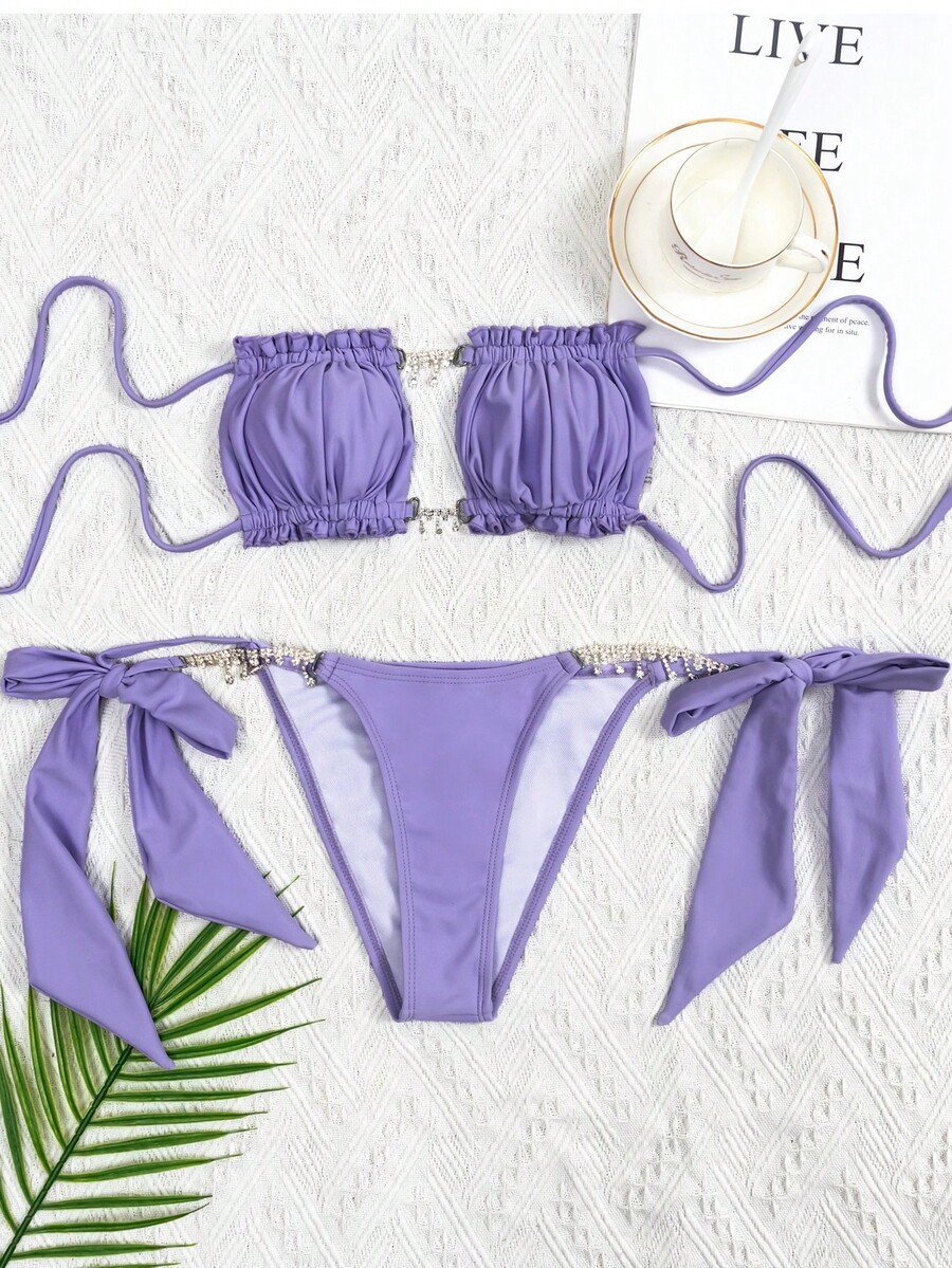 Tag : SHEIN Swim SXY ribete fruncido Bandeau con cordón lateral Bañador bikini Moda de Mujer SHEIN