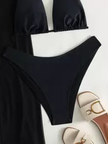 Related pictures for SHEIN Swim Solid Bikini Set Halter Bra Swim Panty Cover Up Skirt Piece Bathing Suit SHEIN UK