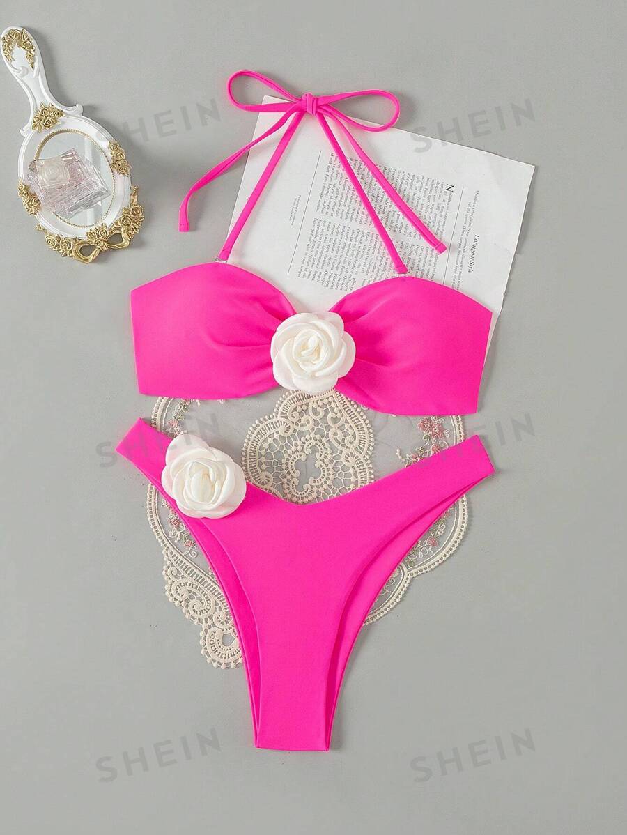 SHEIN Swim Summer Beach Women S Halter Neck Bikini Set With 3d Flower Decoration SHEIN UK is a popular picture for sexy and hot.