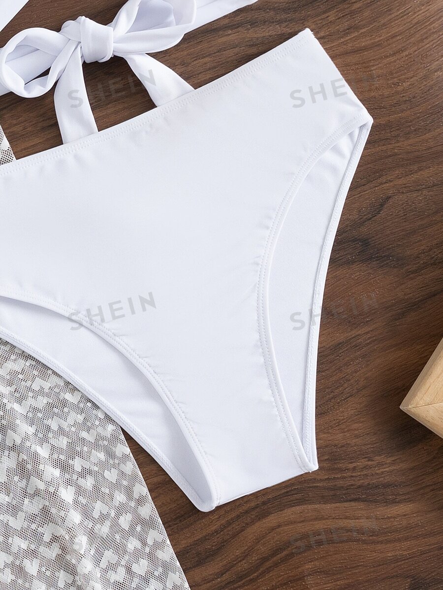 SHEIN Swim Summer Beach Wrap Cross Tie Back Push Up Bikini Set With Beach Skirt For Sale is a popular picture for sexy and hot.