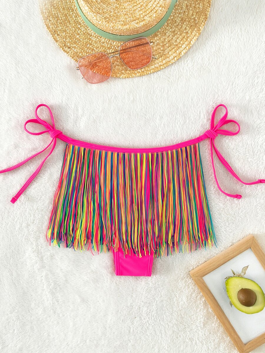 Tag : SHEIN Swim Vcay Bottom de bikini de rayas de colores bajo con fleco con cordón lateral Moda de