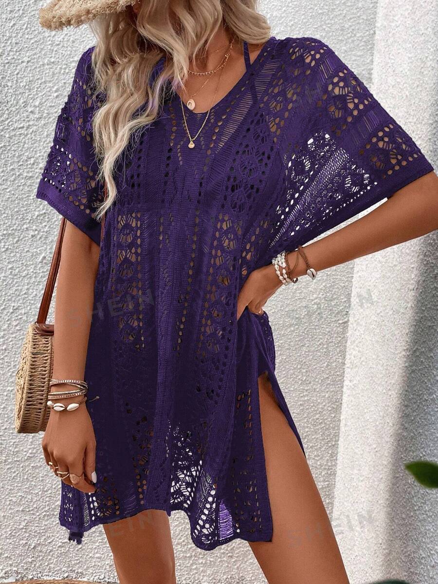 Tag : SHEIN Swim Vestido de encobrimento abertura e recorte vazado na coxa sem Maiô Bikini SHEIN