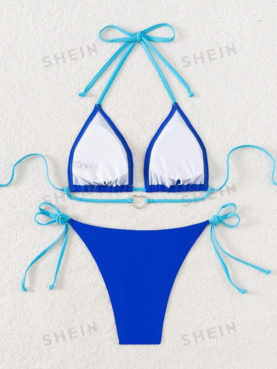 SHEIN Swim Women Color Block Round Ring Connection Halter Strap Bikini Set For Vacation And is a popular picture for sexy and hot.