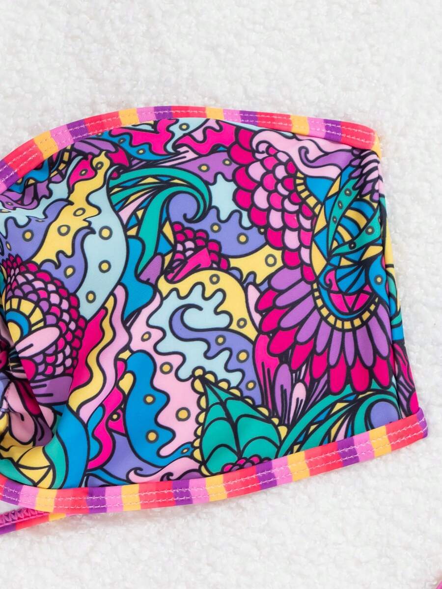 Tag : SHEIN Swim Women S Vacation Floral Printed Bandeau Bikini Set With Round Ring Connection Summer
