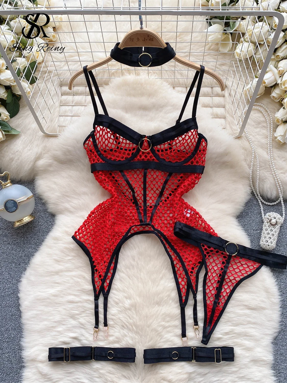 Tag : SINGREINY Ensemble De Lingerie Trois Pi Ces En Maille Transparente Licou Anneau D Pissure En