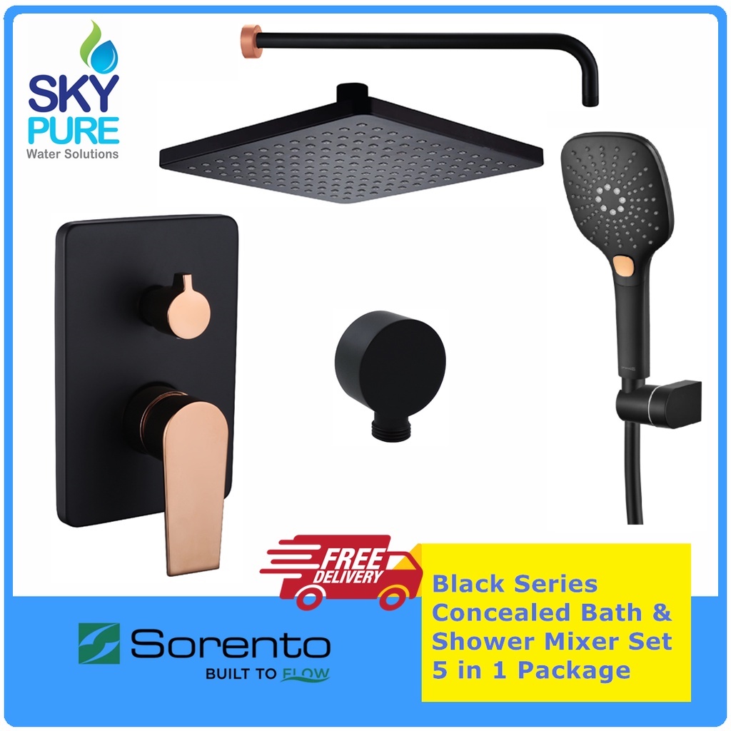 Tag : SORENTO Black Concealed Bath And Shower Mixer Set With Rain Shower And Hand Shower Rose Gold Hot