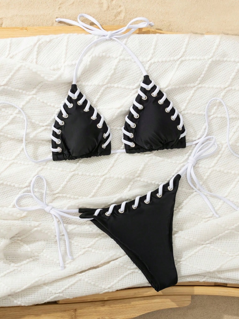Related pictures for STRÓJ KĄPIELOWY DWUCZĘŚCIOWY BIKINI KONTRASTUJĄCY WIĄZANY NA SZYI SHEIN XL 17026805119