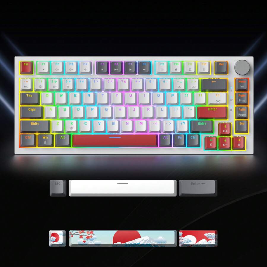 SURMEN Gaming Keyboard 75 Percent American QWERTY Wired Mechanical RGB Keyboard 82 Keys Hot