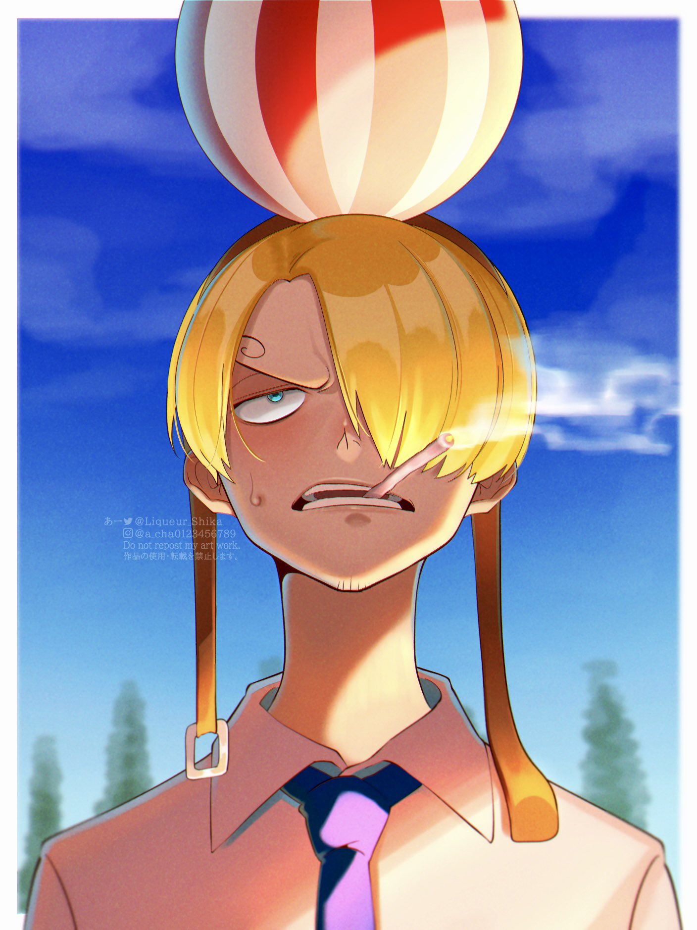 Tag : Safebooru 1boy Balloon Blonde Hair Blue Eyes Blue Sky Cigarette Close Up Commentary Request
