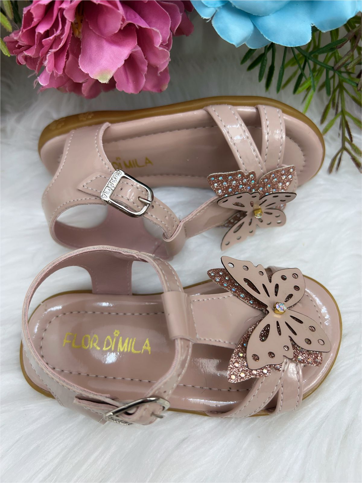 Tag : Sandália Nude C Aplique de Borboleta e Strass Princesas Rosa Charmosa Atacado