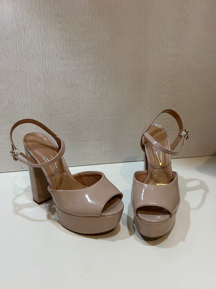 Sandália Salto Alto 13cm Grosso Meia Pata Nude Pep Toe Sandália Feminina Vizzano Usado 305888