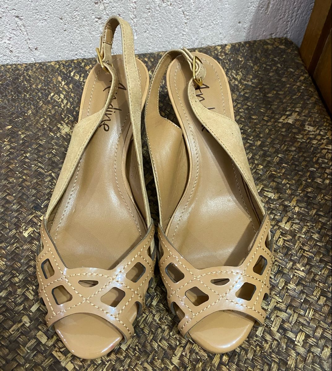 Tag : Sandalha Couro Nude Salto Quadrado Sandália Feminina Nunca Usado enjoei