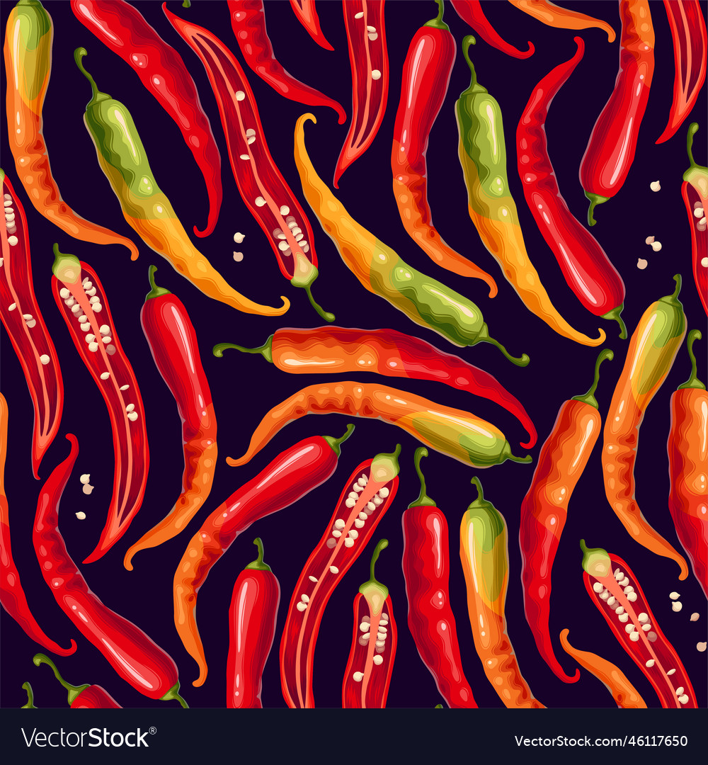 Tag : Seamless Pattern With Red Hot Chilli Peppers Vector Image