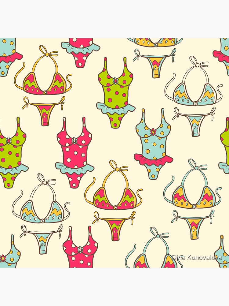 Seamless Summer Pattern With Color Swim Suits Bikini Sticker By Dinkoobraz Redbubble