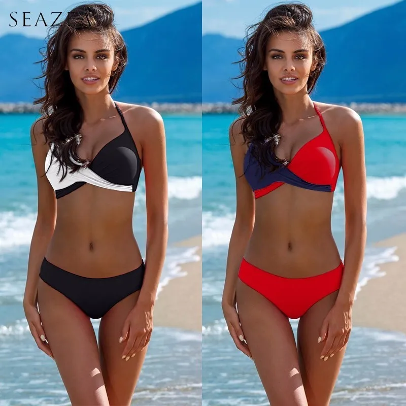 Seazea 2018 Nieuwe Sexy Vrouwen Bikini Set Push Up Badpak Patchwork Badmode Halter Top Bikini is a popular picture for sexy and hot.