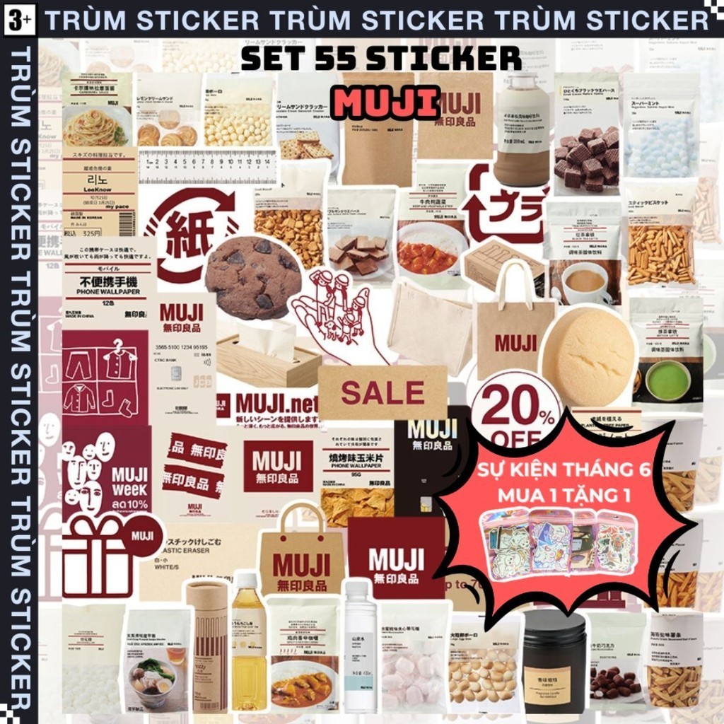 Tag : Set 55 Stickers Hình Dán Brand MUJI hot hit random Trang Trí Decor Laptop Cặp Sách TRÙM
