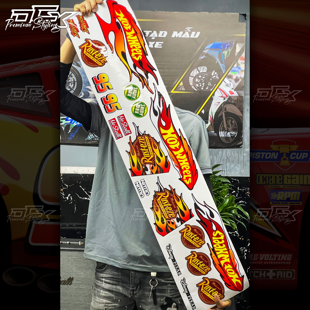 Set Tem Lửa Hot Wheels McQueen Dán Tất Cả Dòng Xe Chất Liệu Decal 3 Lớp Cao Cấp Chống