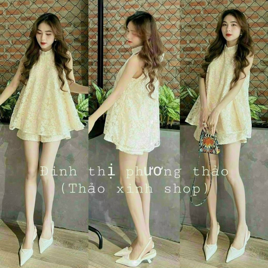 Tag : Set bộ đồ nữ áo babydoll cổ yếm cột nơ sau mix quần ống rộng siêu xinh xắn với tone màu nude nhẹ