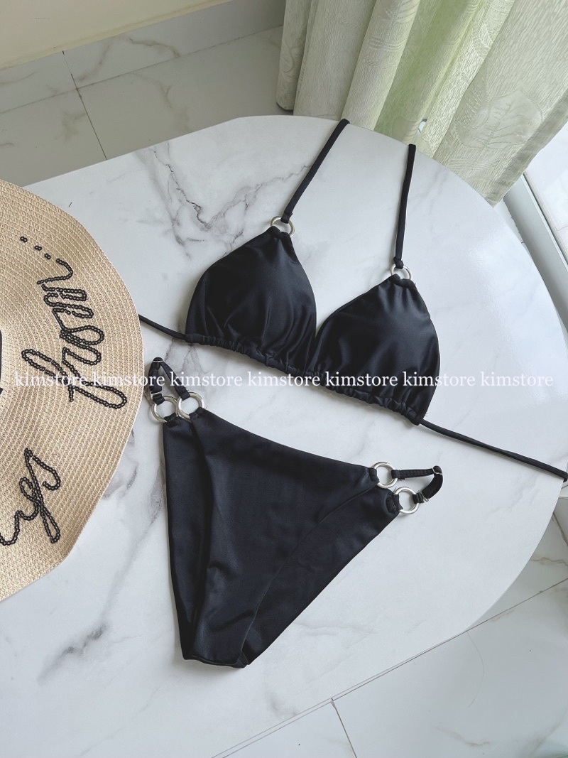 Set bikini basic phối phụ kiện khoen to sang chảnh màu đen nâu 45844