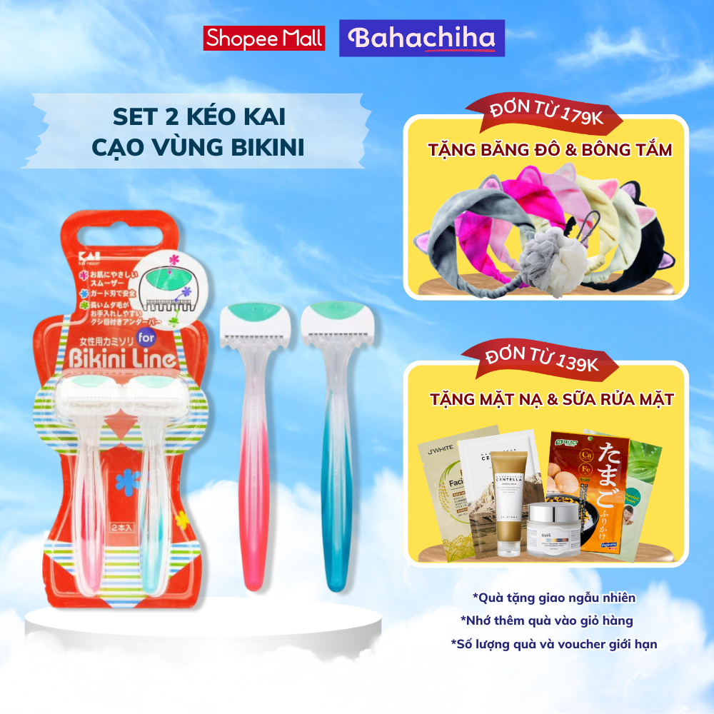 Set dao cạo dành cho vùng bikini Kai Bikini Line Razor lưỡi thép không gỉ màu xanh đỏ Nhật Bản