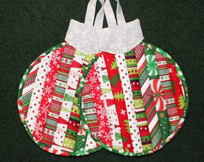Set Of 2 Christmas Ornament Quilted Potholders Quilted Hot Pads Kitchen Art Merry RED GREEN is a popular picture for sexy and hot.