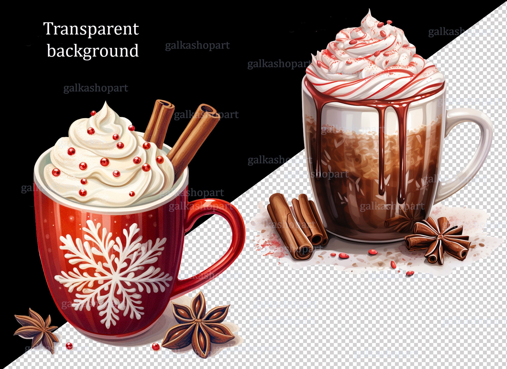 Tag : Set Of Christmas Hot Chocolate Mug Clipart PNG Sublimation Design Hot Cocoa Choc Coffee