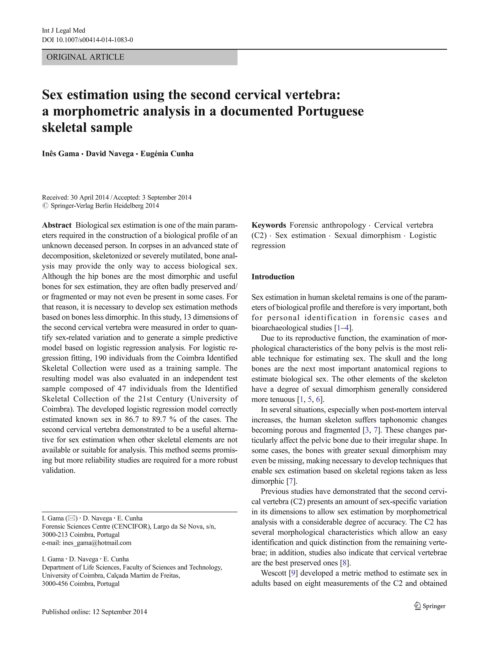 Sex Estimation Using The Second Cervical Vertebra PDF 53742