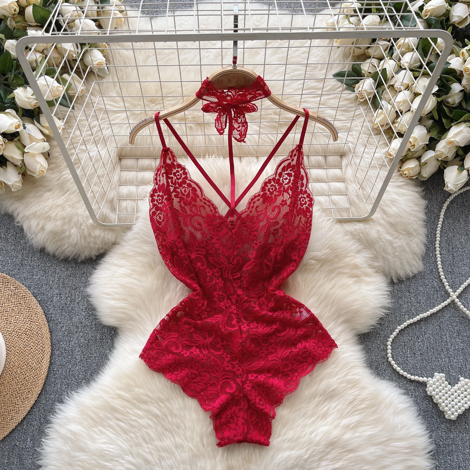 Tag : Sexy Lace Strap Jumpsuit Slim Fit Transparent Women S Pajamas Halter Playsuit Erotic Lingerie