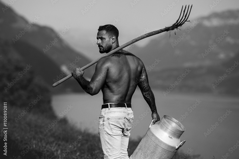 Tag : Sexy Man Farmer On Countryside Farm Farmer With Bare Naked Torso Muscular Sexy Farm Worker In